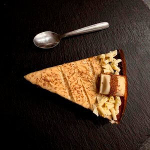 Elegimos cuidadosamente cada ingrediente para lograr un equilibrio perfecto entre cremosidad y sabor. La base se prepara con galleta y mantequilla, dorada y crujiente. Para el relleno, combinamos queso crema, mascarpone y nata para montar, que aportan suavidad y cuerpo, con el dulzor justo del azúcar y la ligereza de los huevos frescos. El toque final lo da la crema de avellanas y el chocolate blanco, que envuelven cada bocado en una experiencia irresistible.